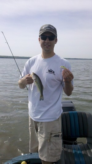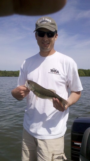 Once we found that spot, we used the trolling motor to stay relatively close to it. It was very windy that day, so we drifted quite a bit. Not too long after that, we started catching some bass, as seen below. I caught at least one on a crankbait. I also caught an unknown, presumably larger fish that broke off the line. To this day, I still wonder what it was.