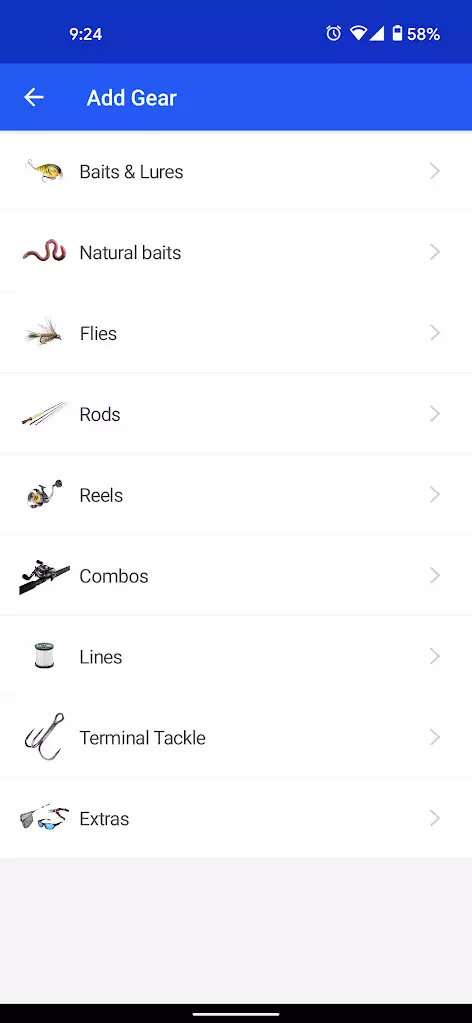 Selecting gear is really a sub-feature of logging a catch. However, you can manage your gear in the app without actually recording any catches. Currently, there are 9 main types of gear that you can manage in the app—from baits & lures, to rods & reels, to terminal tackle. When recording a catch, you can record any and all gear that you have in your gear management, so you can get as specific as you want. If you are really into analyzing your catches to see what works and how to replicate the conditions and the gear you used, this is really good data to capture.