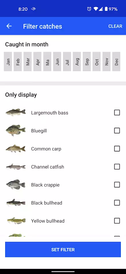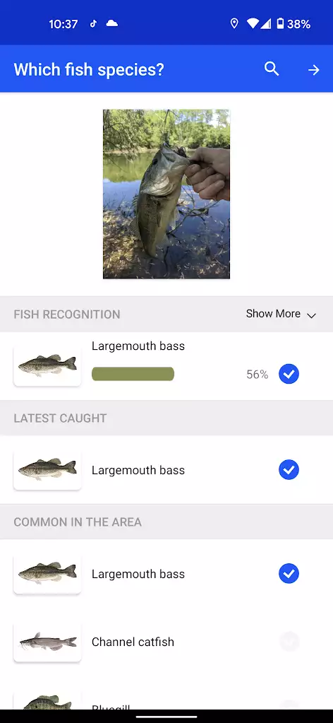 After taking or selecting a photo, the app runs the image through a species recognition engine and automatically selects the most likely species for you. This can save you some more time, so that you can get back to landing the next one.
