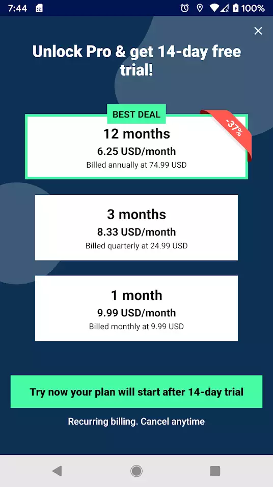 | 1 | $9.99 / month | $9.99 | monthly |