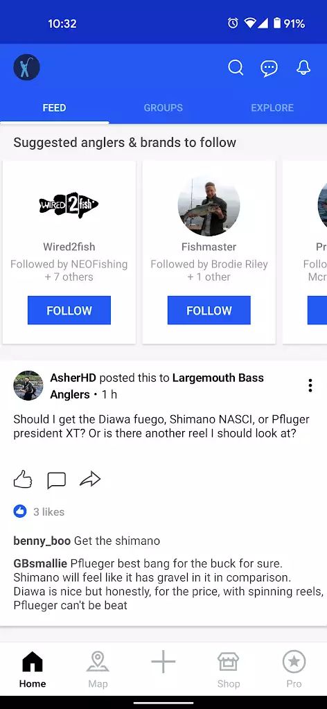 Your feed also suggests other accounts to follow, based on your preferences and current anglers you follow.