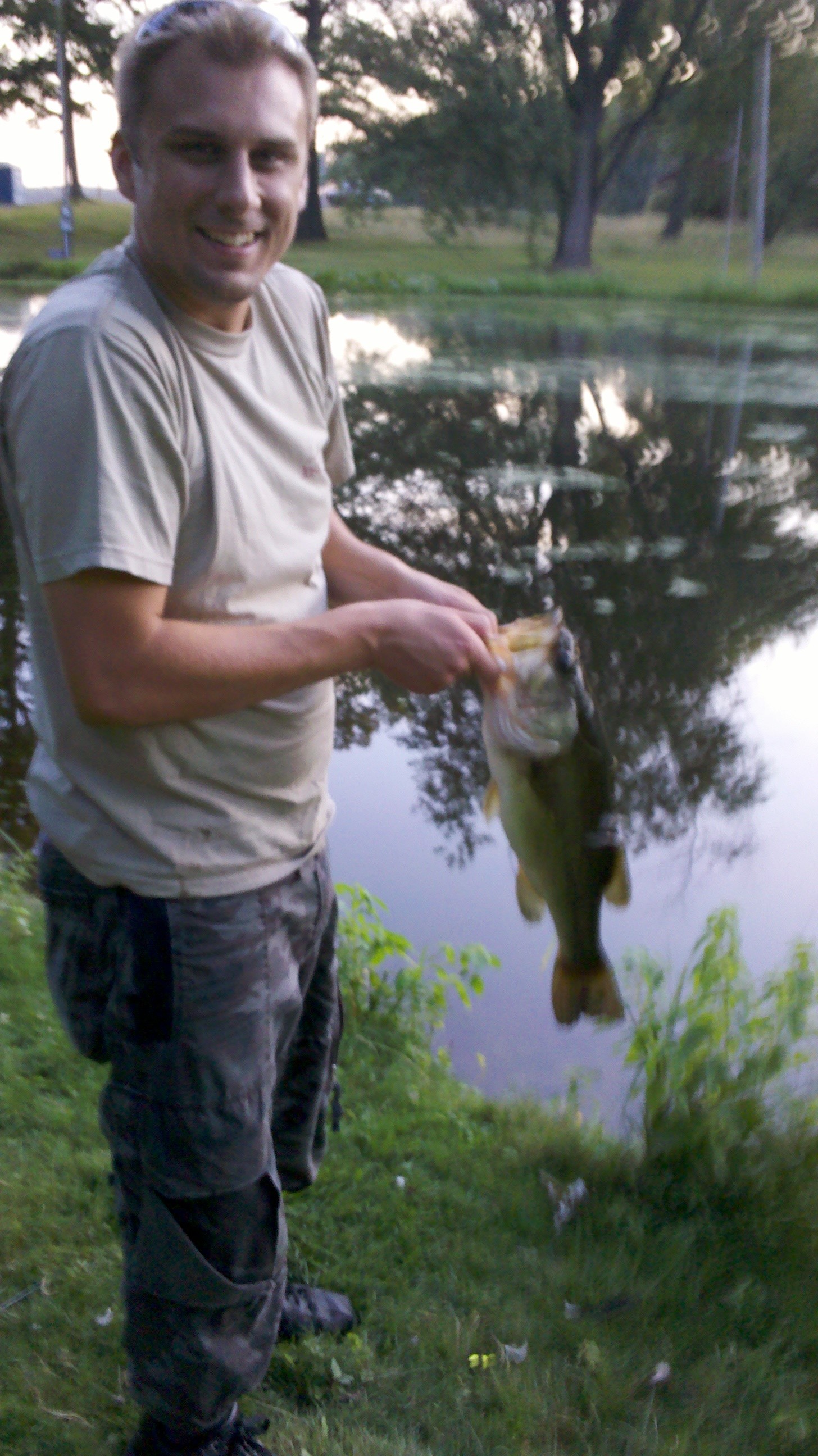 I caught this in a little pond in Wingfoot Lake Park back in 2011. I was fishing with my brother-in-law that day. Luckily he was there to take the picture, because apparently I had trouble holding it up.